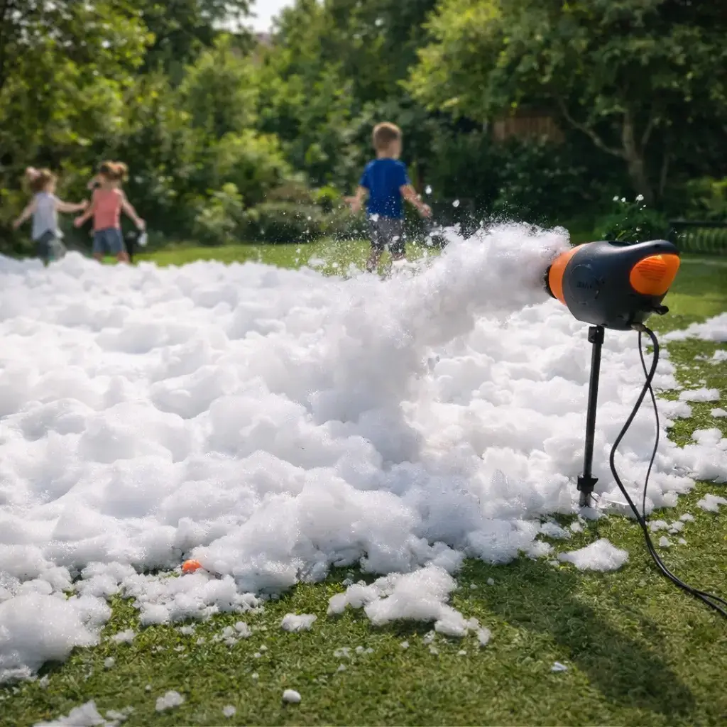 Plane einen klaren „Schaumbereich“ (z.B. auf Rasen) und halte die restliche Fläche als trockene Zone frei – so bleibt alles entspannt. Ein bisschen Musik macht die Stimmung sofort noch besser, weil sich der Schaum-Effekt wie eine kleine Party anfühlt. Wenn du Schaummaschine mieten möchtest, lohnt sich das besonders im Sommer: Kinder können sich austoben, und du bekommst ein echtes Highlight, das auf Fotos und Videos mega aussieht.